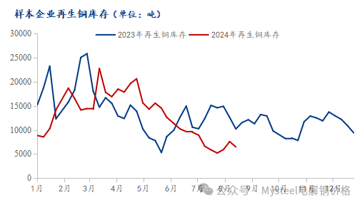供应方面,随着“金九银十”传统旺季的临近及天气转凉,国内废旧物资的拆解量有望逐步增加,为市场提供更多货源。且目前多数货商手中库存仍处于亏损状态,出货意愿明显不强,且下游铜厂采购报价各异,多地的价格优势减弱,待市场逐渐复苏,下游铜厂的采购报价也将回归至正常水平,货商或将释放库存。